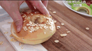 燕麦贝果三明治在纽约,,,, ,,这是一种主食面包,,,, ,,外脆内软有嚼劲,,,, ,,麦片在面包圈烘焙前匀称撒上,,,, ,,待时间出炉,,,, ,,切开面包圈制作成三明治,,,, ,,加入喜欢的食材,,,, ,,很是适合当早餐吃 。。。。 。做下昼茶也是很是细腻的一道“景物” 。。。。 。